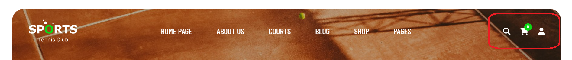 You can see some icons are displaying on the header, such as Search, Cart, and Login icons.